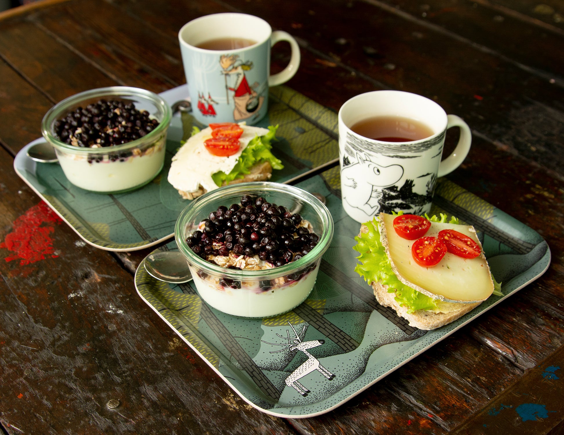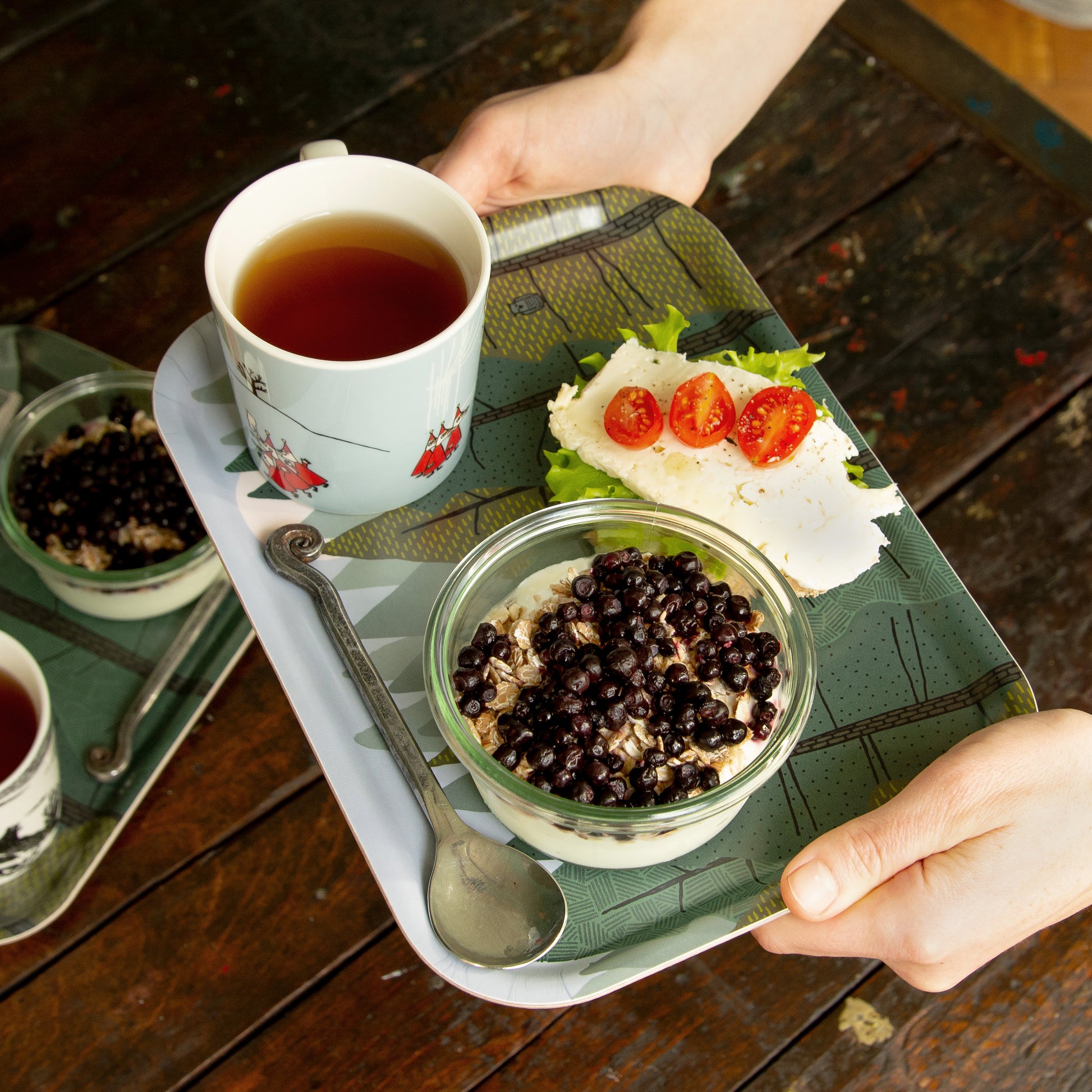 Mit den zwei kleinen Tabletts "Waldboden und Baumwipfel" kommt Schwedenfeeling in den Alltag. Ob als Frühstücksteller, als Serviertablett oder für die kleine Malzeit zwischendurch – die kleinen Tabletts sind immer Einsatzbereit und ein echtes Schmuckstück in der Wohnung. Uns begleiten die leichten und stabilen Tabletts auf jede Reise. Perfekt für das spontane Picknick unterwegs!