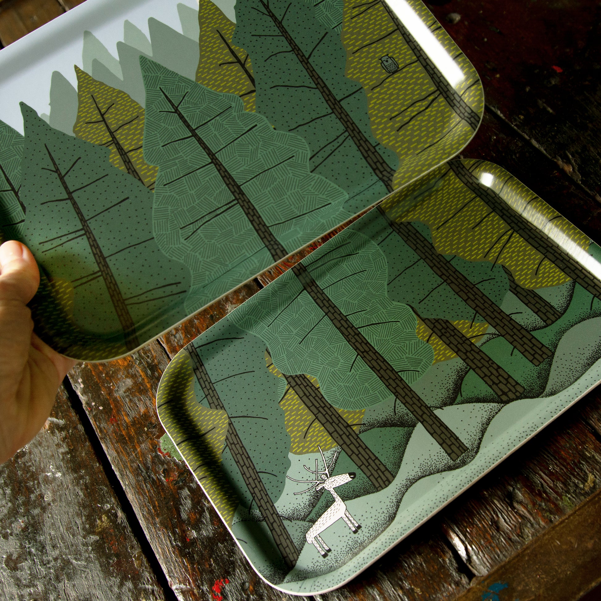 Waldboden & Baumwipfel, 2er Set kleine Tabletts 27x20cm