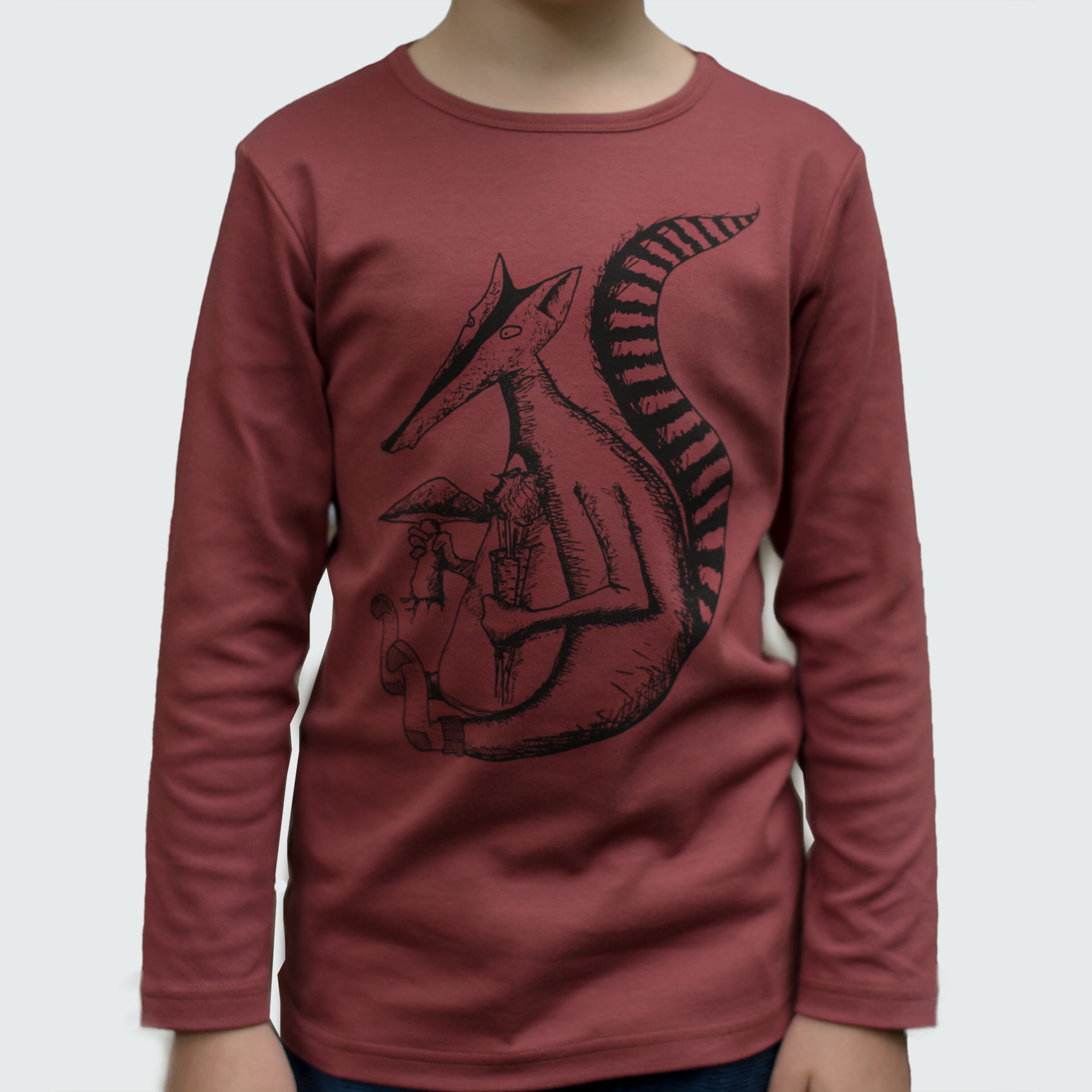 Das Langarm-Shirt in "apple butter" aus weichem Interlockstoff wird von Hand im Siebdruckverfahren im eigenen Atelier in Hannover bedruckt. Der Stoff ist etwas dicker als gewöhnlicher T-Shirtstoff. Wir verwenden wasserbasierte Druckfarben.