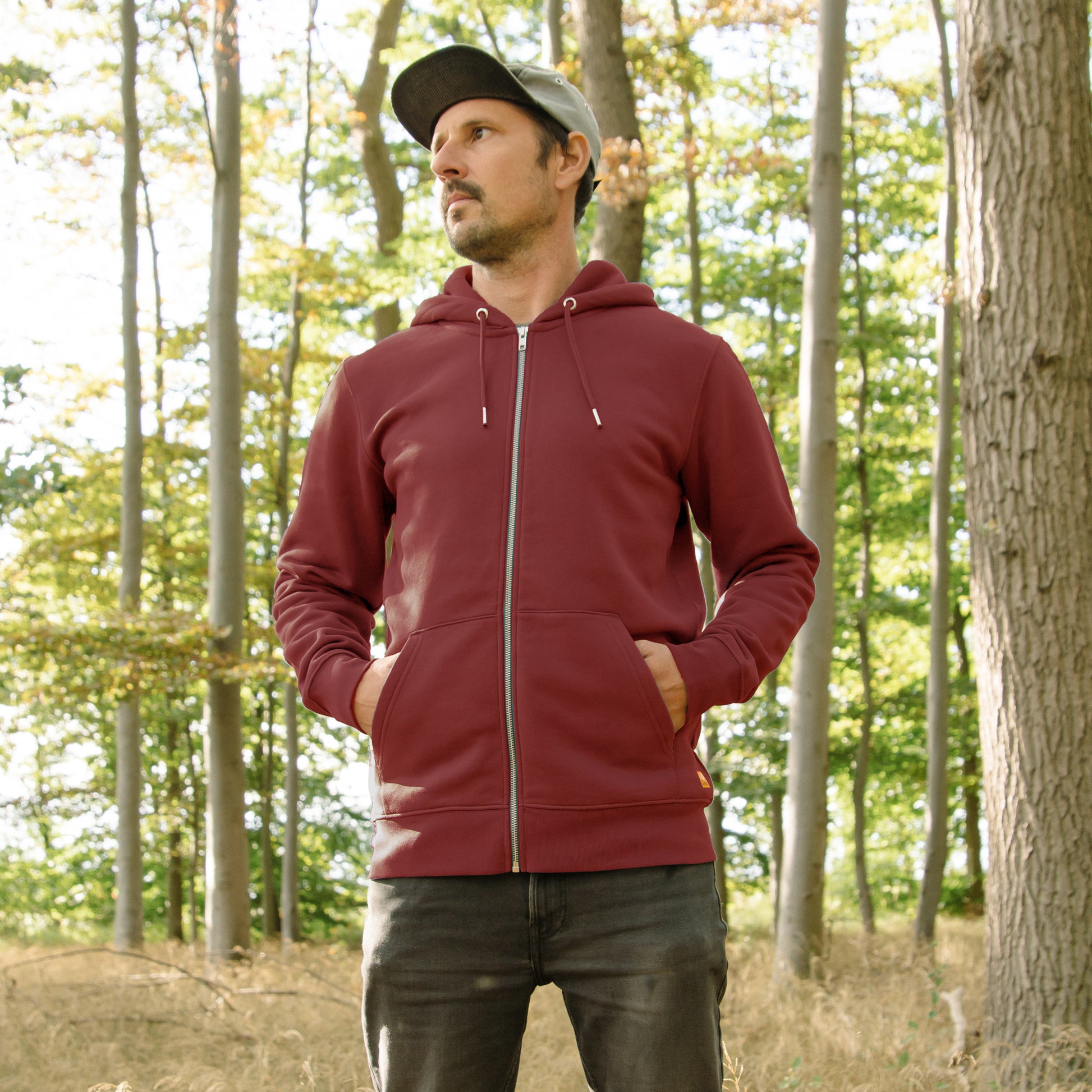 Erle mit Elster Kapuzenjacke unisex in burgundy XXS-XXL