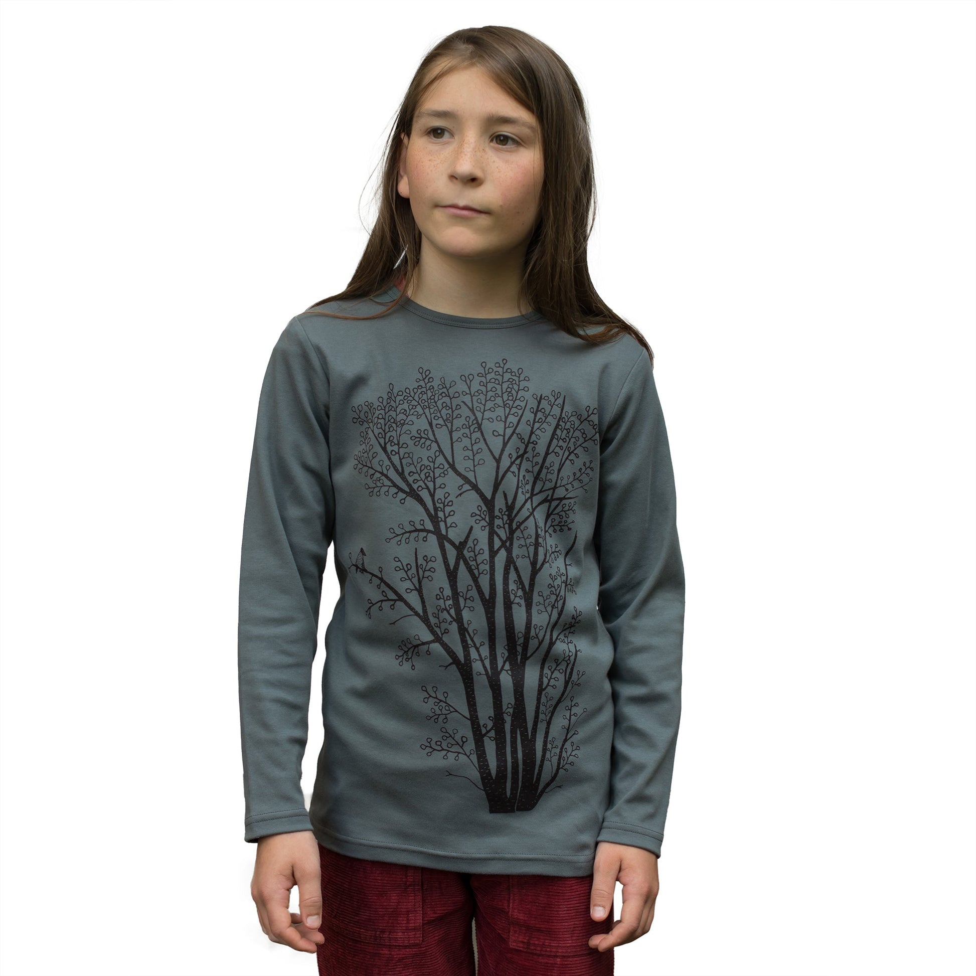 Das Langarm-Shirt in "stormy weather" aus weichem Interlockstoff wird von Hand im Siebdruckverfahren im eigenen Atelier in Hannover bedruckt. Der Stoff ist etwas dicker als gewöhnlicher T-Shirtstoff. Die wasserbasierten Textildruckfarben gehen beim drucken direkt in den Stoff. Sie sind dauerhaft und auf der Kleidung kaum spürbar.