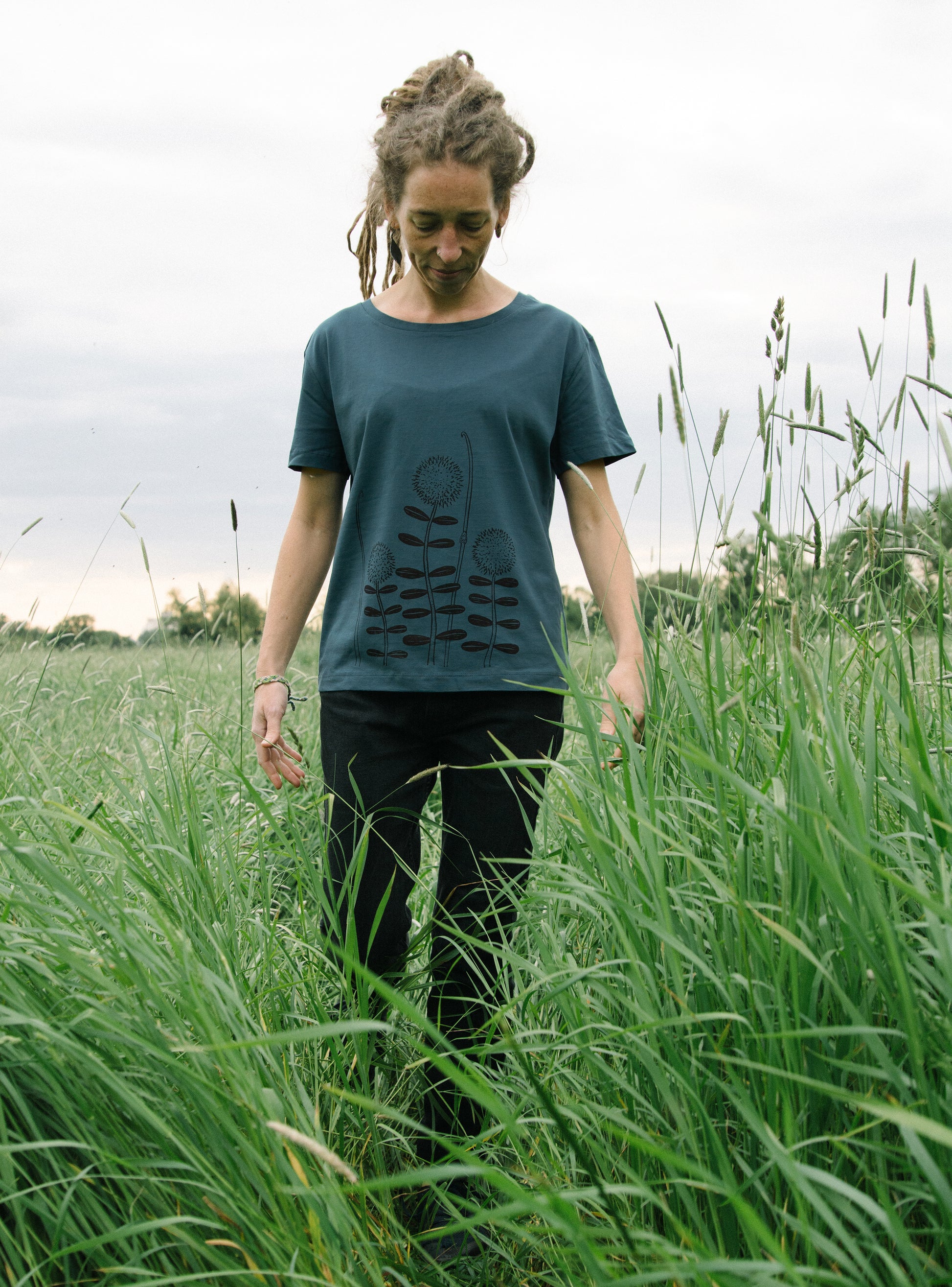 Das Bio T-Shirt wird von Hand im Siebdruckverfahren im eigenen Atelier in Hannover bedruckt. Die Textildruckfarben sind wasserbasiert und dauerhaft.